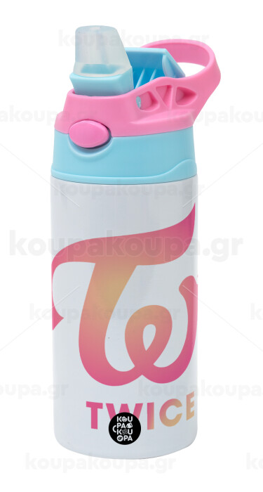 Twice, Παιδικό παγούρι θερμό, ανοξείδωτο, με καλαμάκι ασφαλείας, Ροζ/Σιελ (360ml) BPA FREE