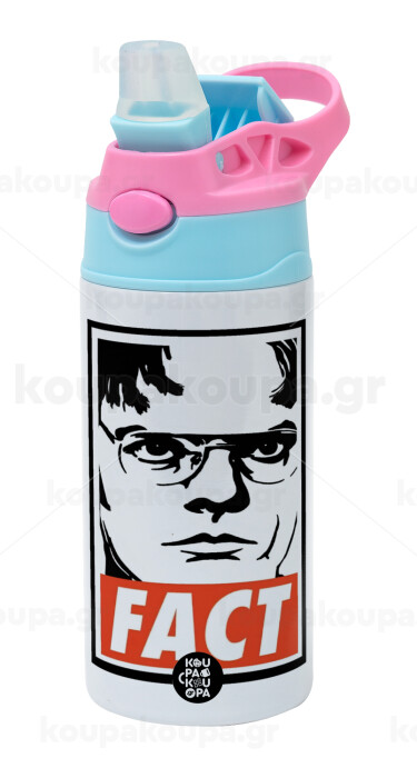 Dunder Mifflin FACT, Παιδικό παγούρι θερμό, ανοξείδωτο, με καλαμάκι ασφαλείας, Ροζ/Σιελ (360ml) BPA FREE
