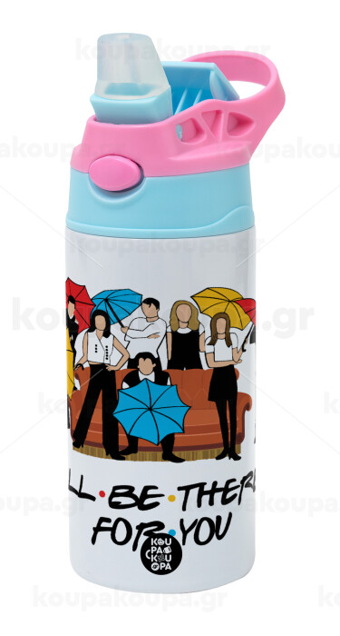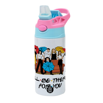 Friends cover, Παιδικό παγούρι θερμό, ανοξείδωτο, με καλαμάκι ασφαλείας, Ροζ/Σιελ (360ml) BPA FREE
