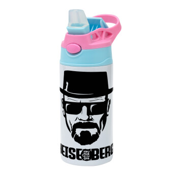 Heisenberg breaking bad, Παιδικό παγούρι θερμό, ανοξείδωτο, με καλαμάκι ασφαλείας, Ροζ/Σιελ (360ml) BPA FREE
