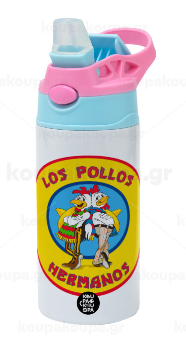 Los Pollos Hermanos, Παιδικό παγούρι θερμό, ανοξείδωτο, με καλαμάκι ασφαλείας, Ροζ/Σιελ (360ml) BPA FREE