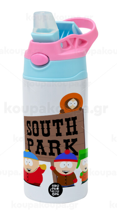 South Park, Παιδικό παγούρι θερμό, ανοξείδωτο, με καλαμάκι ασφαλείας, Ροζ/Σιελ (360ml) BPA FREE