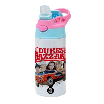 The Dukes of Hazzard, Παιδικό παγούρι θερμό, ανοξείδωτο, με καλαμάκι ασφαλείας, Ροζ/Σιελ (360ml) BPA FREE