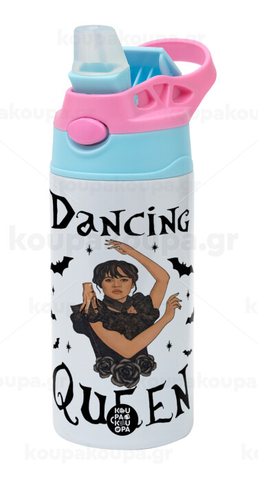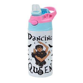 Wednesday Addams Dance, Παιδικό παγούρι θερμό, ανοξείδωτο, με καλαμάκι ασφαλείας, Ροζ/Σιελ (360ml) BPA FREE