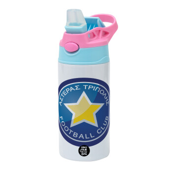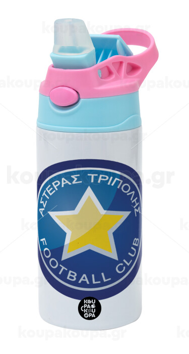 Αστέρας Τρίπολης, Παιδικό παγούρι θερμό, ανοξείδωτο, με καλαμάκι ασφαλείας, Ροζ/Σιελ (360ml) BPA FREE