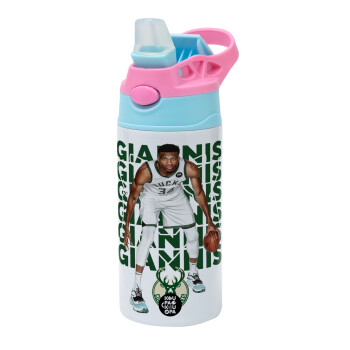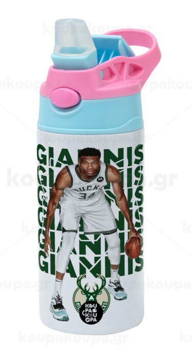 Γιάννης Αντετοκούνμπο, Παιδικό παγούρι θερμό, ανοξείδωτο, με καλαμάκι ασφαλείας, Ροζ/Σιελ (360ml) BPA FREE