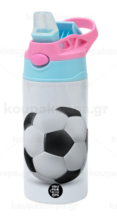 Μπάλα ποδοσφαίρου, Παιδικό παγούρι θερμό, ανοξείδωτο, με καλαμάκι ασφαλείας, Ροζ/Σιελ (360ml) BPA FREE