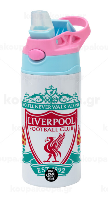 Liverpool, Παιδικό παγούρι θερμό, ανοξείδωτο, με καλαμάκι ασφαλείας, Ροζ/Σιελ (360ml) BPA FREE