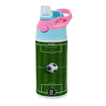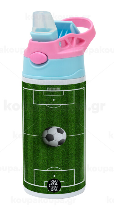 Soccer field, Γήπεδο ποδοσφαίρου, Παιδικό παγούρι θερμό, ανοξείδωτο, με καλαμάκι ασφαλείας, Ροζ/Σιελ (360ml) BPA FREE