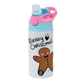 mr gingerbread, Παιδικό παγούρι θερμό, ανοξείδωτο, με καλαμάκι ασφαλείας, Ροζ/Σιελ (360ml) BPA FREE