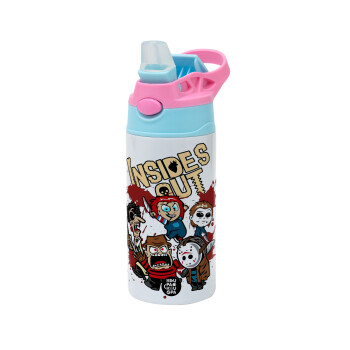 Παιδικό παγούρι θερμό, ανοξείδωτο, με καλαμάκι ασφαλείας, Ροζ/Σιελ (360ml) BPA FREE με θέμα Halloween