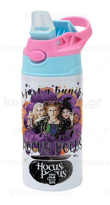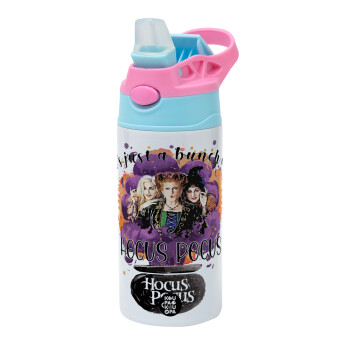 Hocus Pocus, Παιδικό παγούρι θερμό, ανοξείδωτο, με καλαμάκι ασφαλείας, Ροζ/Σιελ (360ml) BPA FREE