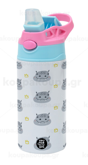 Hippo, Παιδικό παγούρι θερμό, ανοξείδωτο, με καλαμάκι ασφαλείας, Ροζ/Σιελ (360ml) BPA FREE
