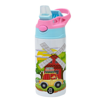 Toy car, Παιδικό παγούρι θερμό, ανοξείδωτο, με καλαμάκι ασφαλείας, Ροζ/Σιελ (360ml) BPA FREE