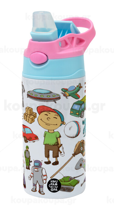 Toys Boy, Παιδικό παγούρι θερμό, ανοξείδωτο, με καλαμάκι ασφαλείας, Ροζ/Σιελ (360ml) BPA FREE
