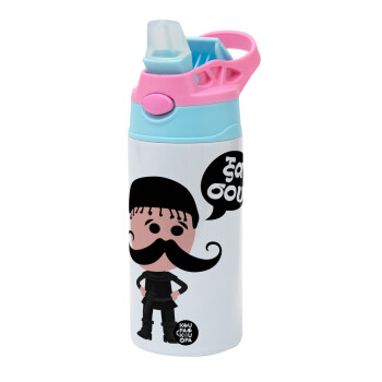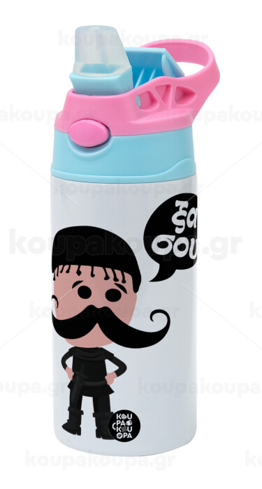 Κρητικός "Ξα σου", Παιδικό παγούρι θερμό, ανοξείδωτο, με καλαμάκι ασφαλείας, Ροζ/Σιελ (360ml) BPA FREE