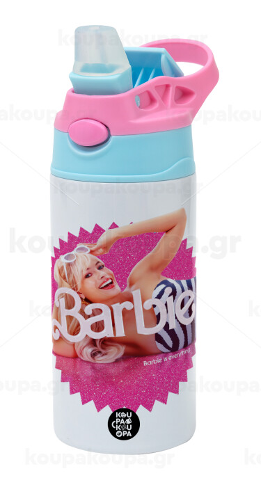 Barbie is everything, Παιδικό παγούρι θερμό, ανοξείδωτο, με καλαμάκι ασφαλείας, Ροζ/Σιελ (360ml) BPA FREE