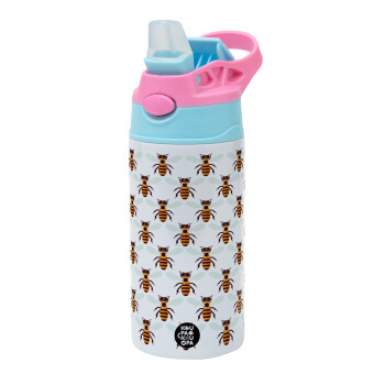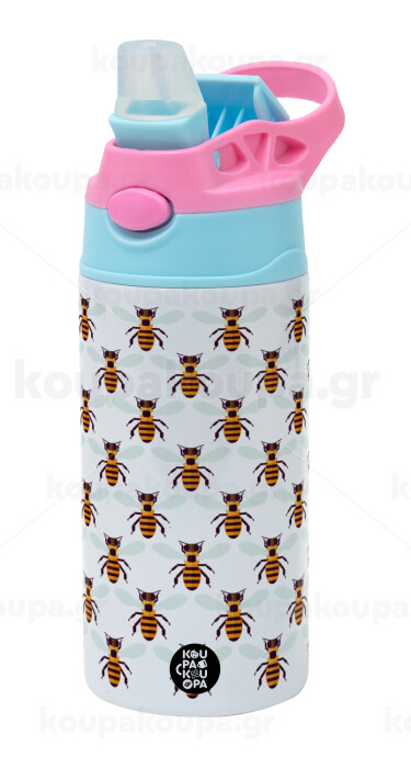 Μελισσούλες, Παιδικό παγούρι θερμό, ανοξείδωτο, με καλαμάκι ασφαλείας, Ροζ/Σιελ (360ml) BPA FREE