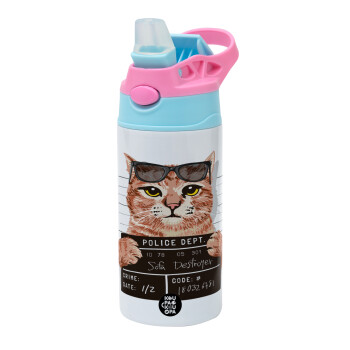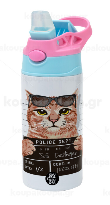 Cool cat, Παιδικό παγούρι θερμό, ανοξείδωτο, με καλαμάκι ασφαλείας, Ροζ/Σιελ (360ml) BPA FREE