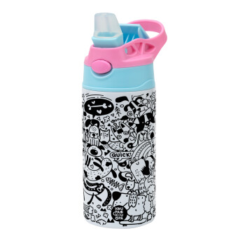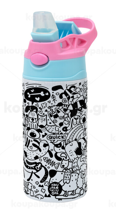 Σκυλάκια, Παιδικό παγούρι θερμό, ανοξείδωτο, με καλαμάκι ασφαλείας, Ροζ/Σιελ (360ml) BPA FREE