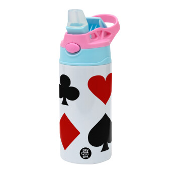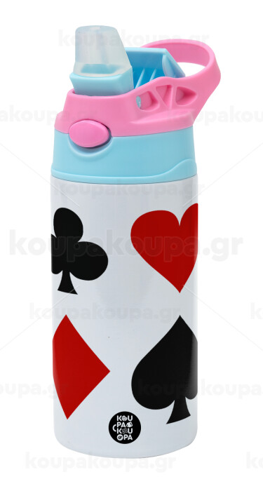 Τραπουλόχαρτα, Παιδικό παγούρι θερμό, ανοξείδωτο, με καλαμάκι ασφαλείας, Ροζ/Σιελ (360ml) BPA FREE