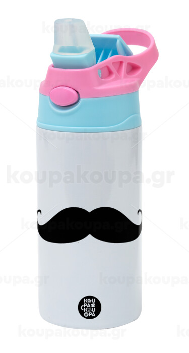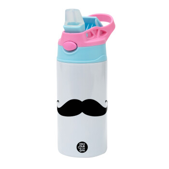 Μουστάκι, Παιδικό παγούρι θερμό, ανοξείδωτο, με καλαμάκι ασφαλείας, Ροζ/Σιελ (360ml) BPA FREE