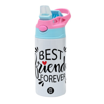 Best Friends forever, Παιδικό παγούρι θερμό, ανοξείδωτο, με καλαμάκι ασφαλείας, Ροζ/Σιελ (360ml) BPA FREE