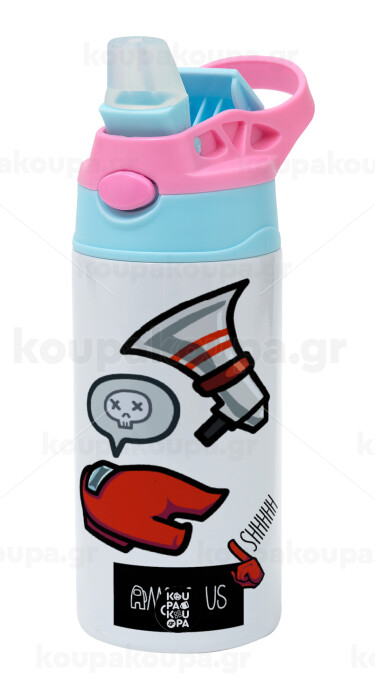 Among US Shhhh!!!, Παιδικό παγούρι θερμό, ανοξείδωτο, με καλαμάκι ασφαλείας, Ροζ/Σιελ (360ml) BPA FREE