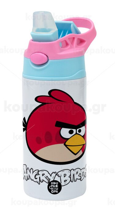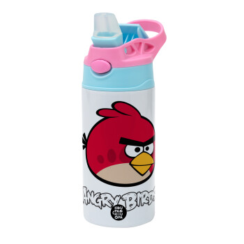 Angry birds Terence, Παιδικό παγούρι θερμό, ανοξείδωτο, με καλαμάκι ασφαλείας, Ροζ/Σιελ (360ml) BPA FREE