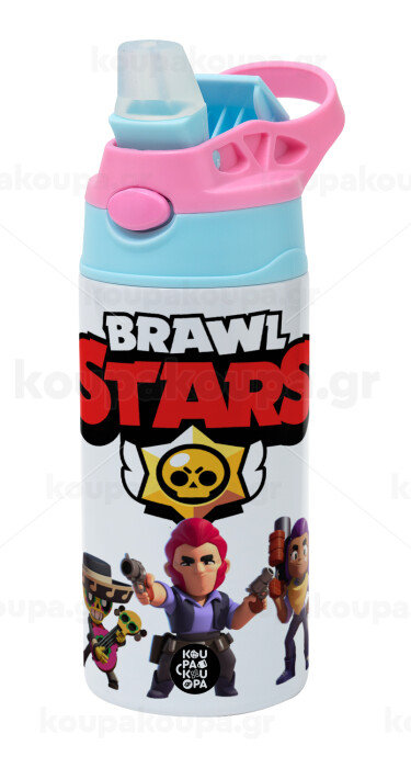 Brawl Stars Desert, Παιδικό παγούρι θερμό, ανοξείδωτο, με καλαμάκι ασφαλείας, Ροζ/Σιελ (360ml) BPA FREE