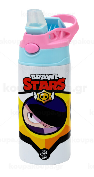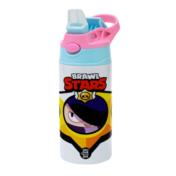 Brawl Stars Edgar, Παιδικό παγούρι θερμό, ανοξείδωτο, με καλαμάκι ασφαλείας, Ροζ/Σιελ (360ml) BPA FREE