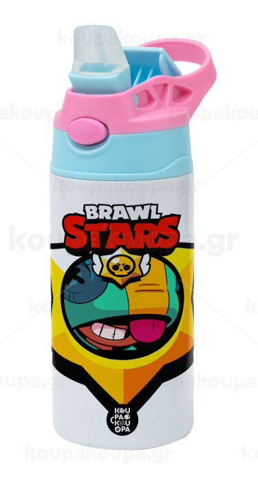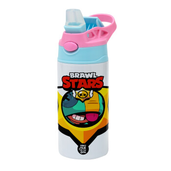 Brawl Stars Leon, Παιδικό παγούρι θερμό, ανοξείδωτο, με καλαμάκι ασφαλείας, Ροζ/Σιελ (360ml) BPA FREE