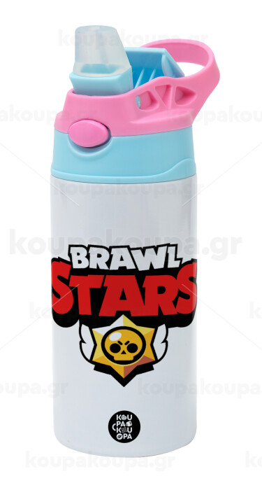Brawl Stars, Παιδικό παγούρι θερμό, ανοξείδωτο, με καλαμάκι ασφαλείας, Ροζ/Σιελ (360ml) BPA FREE