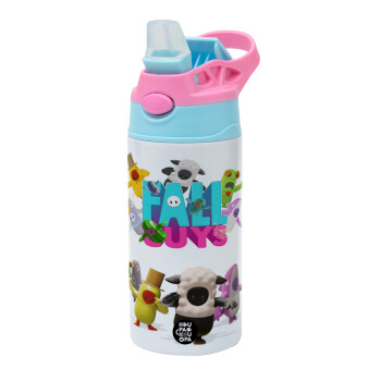FALL GUYS, Παιδικό παγούρι θερμό, ανοξείδωτο, με καλαμάκι ασφαλείας, Ροζ/Σιελ (360ml) BPA FREE