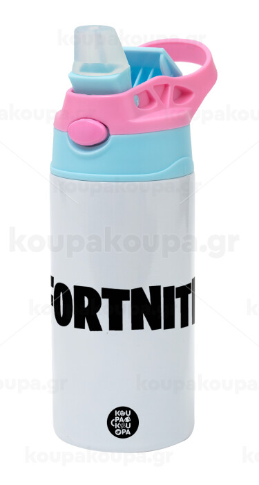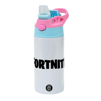 Fortnite landscape, Παιδικό παγούρι θερμό, ανοξείδωτο, με καλαμάκι ασφαλείας, Ροζ/Σιελ (360ml) BPA FREE