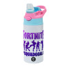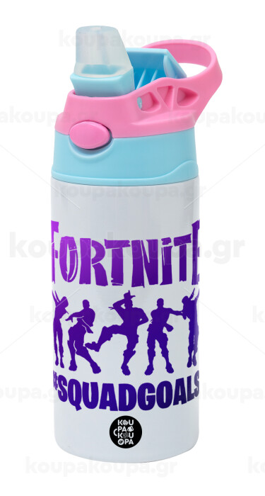 Fortnite #squadgoals, Παιδικό παγούρι θερμό, ανοξείδωτο, με καλαμάκι ασφαλείας, Ροζ/Σιελ (360ml) BPA FREE