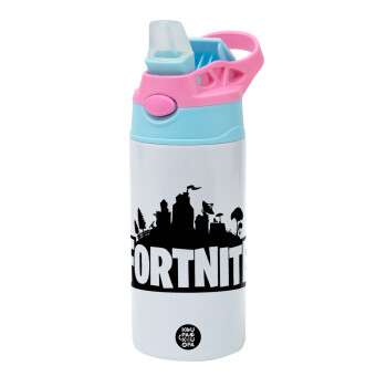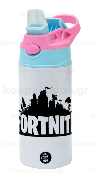Fortnite, Παιδικό παγούρι θερμό, ανοξείδωτο, με καλαμάκι ασφαλείας, Ροζ/Σιελ (360ml) BPA FREE