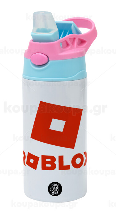 Roblox red, Παιδικό παγούρι θερμό, ανοξείδωτο, με καλαμάκι ασφαλείας, Ροζ/Σιελ (360ml) BPA FREE