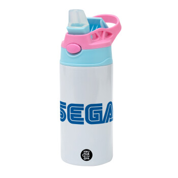 SEGA, Παιδικό παγούρι θερμό, ανοξείδωτο, με καλαμάκι ασφαλείας, Ροζ/Σιελ (360ml) BPA FREE