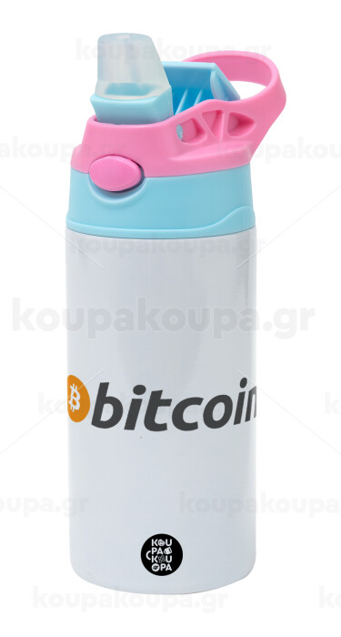 Bitcoin Crypto, Παιδικό παγούρι θερμό, ανοξείδωτο, με καλαμάκι ασφαλείας, Ροζ/Σιελ (360ml) BPA FREE