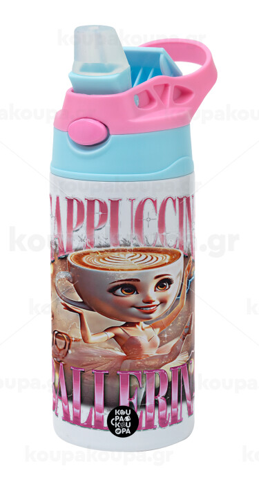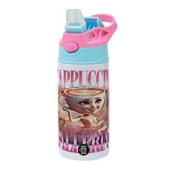 BALLERINA CAPUCHINA FUNK, Παιδικό παγούρι θερμό, ανοξείδωτο, με καλαμάκι ασφαλείας, Ροζ/Σιελ (360ml) BPA FREE