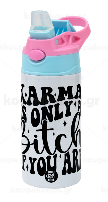 Karma is Only A Bitch if You Are, Παιδικό παγούρι θερμό, ανοξείδωτο, με καλαμάκι ασφαλείας, Ροζ/Σιελ (360ml) BPA FREE