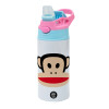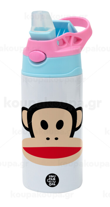 Monkey, Παιδικό παγούρι θερμό, ανοξείδωτο, με καλαμάκι ασφαλείας, Ροζ/Σιελ (360ml) BPA FREE