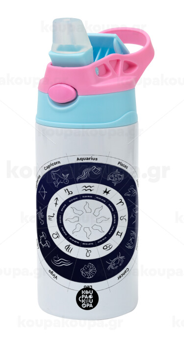 Ζωδιακός κύκλος, Παιδικό παγούρι θερμό, ανοξείδωτο, με καλαμάκι ασφαλείας, Ροζ/Σιελ (360ml) BPA FREE