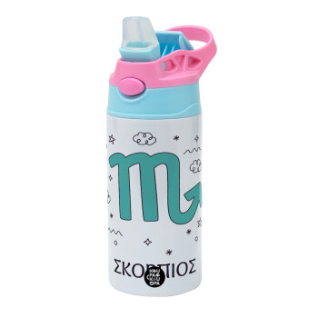 Ζώδια Σκορπιός, Παιδικό παγούρι θερμό, ανοξείδωτο, με καλαμάκι ασφαλείας, Ροζ/Σιελ (360ml) BPA FREE