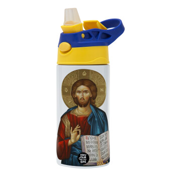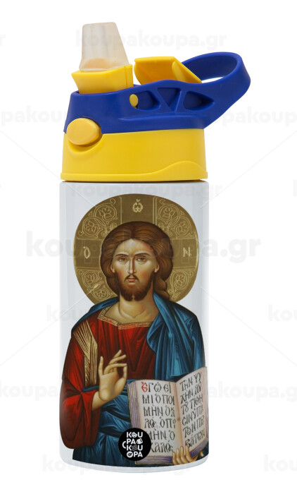 Ιησούς, Παιδικό παγούρι θερμό, ανοξείδωτο, με καλαμάκι ασφαλείας, πράσινο/μπλε (360ml) BPA FREE