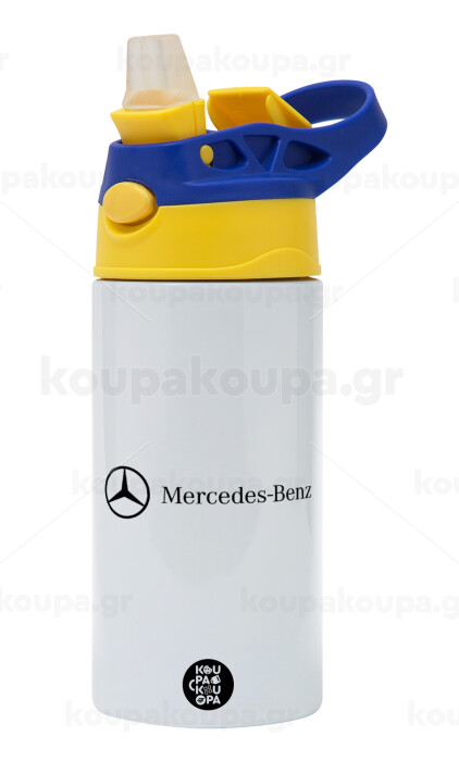 Mercedes small logo, Παιδικό παγούρι θερμό, ανοξείδωτο, με καλαμάκι ασφαλείας, πράσινο/μπλε (360ml) BPA FREE