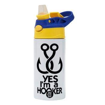 Yes i am Hooker, Παιδικό παγούρι θερμό, ανοξείδωτο, με καλαμάκι ασφαλείας, πράσινο/μπλε (360ml) BPA FREE