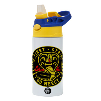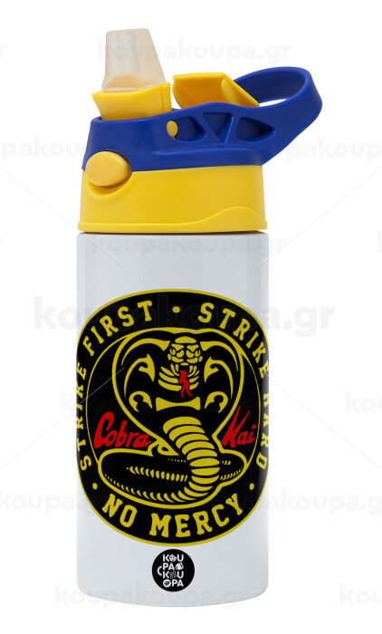 cobra kai strike first dojo, Παιδικό παγούρι θερμό, ανοξείδωτο, με καλαμάκι ασφαλείας, πράσινο/μπλε (360ml) BPA FREE
