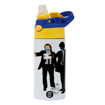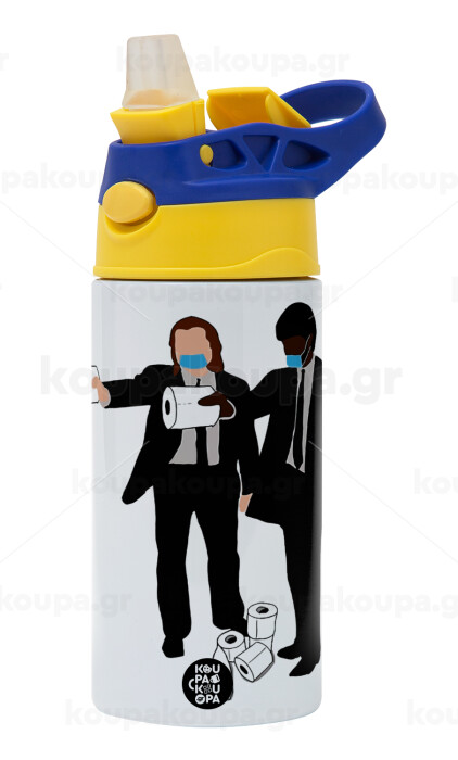 Pulp Fiction 3 meter away, Παιδικό παγούρι θερμό, ανοξείδωτο, με καλαμάκι ασφαλείας, πράσινο/μπλε (360ml) BPA FREE